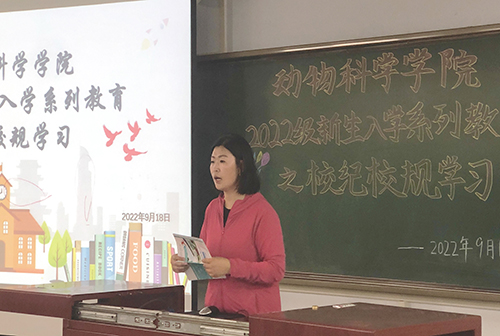 9月18日,公司在博学楼307、309教室开展2022级新生入学系列教育之校纪校规学习会。公司一营一连、二连、三连、四连全体新生参加本次学习会,由学办主任胡晓燕,分团委书记其力格尔主讲。