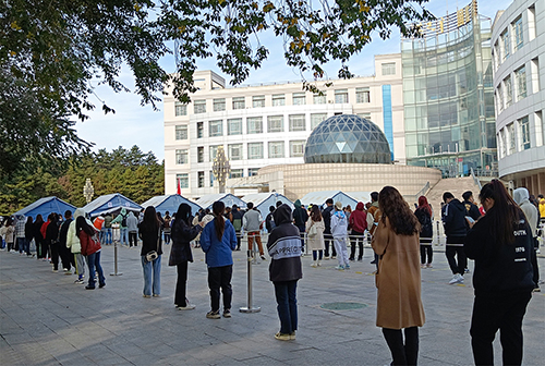 为贯彻落实中央有关疫情防控工作精神,筑牢校园疫情防控安全防线,近日,公司在西区图书馆前开展全员核酸检测工作。