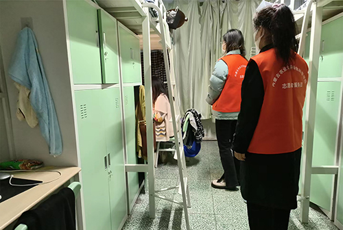 公司研究生员工会志愿者率先发挥先锋模范作用,细化并落实各项疫情防控工作。志愿者们在核酸检测现场进行秩序维护,使核酸检测工作有条不紊地进行;在校园公共区域对不规范行为及时劝阻,保障校园的秩序安全。同时开展寝室走访工作,检查安全隐患并提醒同学们勤开窗通风,注意卫生,最大化降低病毒传播风险。每位研究生员工会志愿者身体力行,用行动诠释了新时代青年的责任与担当,全院师生勠力同心,众志成城,全力筑牢疫情防控安全防线。