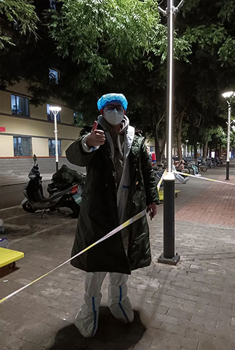 被采访者:主要工作是帮同学们分发一日三顿的餐食和每栋楼人员所需的日常饮用矿泉水,帮助各个宿舍尽量每天打一壶热水,以及对公司和外界提供的抗疫物资进行运输。最大的困难就是刚开始第一批志愿者只有24位同学,人数不够,任务繁杂,使我们的工作变得繁重复杂,最主要的是这些会给封闭在宿舍楼内的同学们带来很大不便,我们解决困难的方式就是进行合理的任务分配,每个人动作迅速且认真,就不会让各级工作停滞不前。现在我们志愿者的队伍越来越庞大,也让我们的工作变得有条不紊。