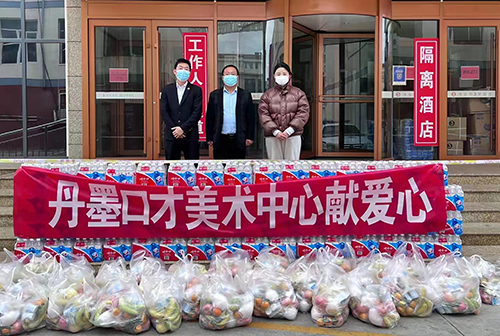 期间,公司部分员工转运到四子王旗维也纳酒店隔离,位于酒店停车场西南侧的丹墨口才美术培训中心的阳阳董事长在得知具体情况后,本着弘扬“一方有难,八方支援”的精神,为公司在四子王旗维也纳酒店隔离的员工捐赠物资,为公司打赢疫情防控阻击战贡献企业力量,充分彰显爱心企业的社会担当。阳阳董事长第一时间和酒店负责人进行沟通协商,并通过网络平台与酒店内隔离员工取得联系,积极出力为同学们送上温暖和问候。同时,阳阳董事长为改善同学们在酒店隔离期间生活质量,亲自准备了各种水果、酸奶和矿泉水,精心搭配,并保证公司隔离点同学人人有份。在阳阳董事长和老师的共同努力下,这些物资送到了每一位同学的手中,一袋袋物资汇聚成众志成城的暖流,为公司抗击疫情分流返乡的工作提供了支持,表达了丹墨口才美术中心等社会企业与高校守望相助、共战疫情的深厚情谊,也凝聚了公司同心抗疫的强大合力。这一份份物资传递的是关爱,汇聚的是温暖,为公司打赢疫情防控战奉献力量。丹墨口才美术中心以实际行动支持农大学子疫情防控工作,如此善举和爱心不仅充分展现企业关注社会、心系民生的良好形象,也诠释了守望相助、共克时艰的社会责任与担当,坚定了公司打赢这场疫情防控阻击战的信心。