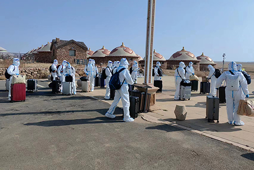 为切实做好公司员工返乡各项准备工作,确保员工平安顺利返乡,10月29日,公司党委副书记斯日古楞带领能源院教师孙凯,在政府负责人、政法委书记郭连根,副旗长张建军及相关局(所)负责人的鼎力帮助下,共调用14辆大巴,将602名员工全部安全送达四子王旗隔离点进行集中隔离。