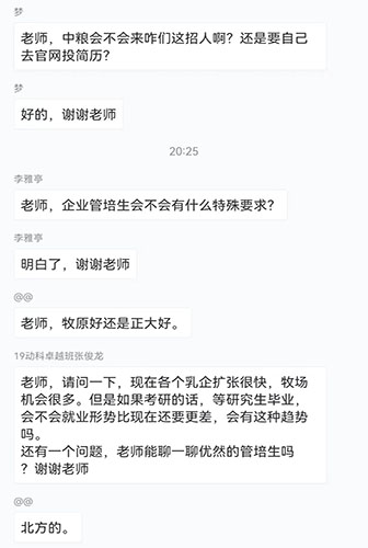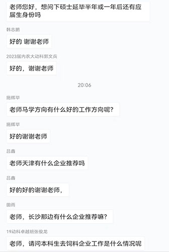 会议伊始,青林简述本次会议旨在为2023届毕业生进行就业指导,并对同学们存在的问题展开解答。随后,他详细解释签约三方协议对毕业生就业的重要性,签约三方协议不仅关系到派遣证的申办,更是对个人权益的一种保护。期间,他告知同学们三方协议签约地点和方式,要求同学们时刻关注北疆就业网的消息,说明准确填报个人信息的重要性,增强了同学们的警惕性。会议中,胡晓燕要求同学们择业要综合考虑,衡量考研难与就业难的问题,并把个人发展与社会和国家发展结合起来,有利于个人实际与岗位的良好结合,把握应届生身份的就业黄金时期,使同学们在择业时不再迷茫,降低错过最佳就业机会的风险。会议最后,毕业生们咨询自己感兴趣的岗位和企业,胡晓燕和青林作出解答并提出建议。