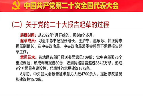 活动伊始,包国荣提到“二十大”是中国共产党在百年辉煌成就和10年伟大变革的高起点上创造新时代更大荣光的大会,学习宣传贯彻党的二十大精神既是公司师生的职责所在,也是重要任务,他表明本次宣讲活动旨在指导公司师生全面学习把握落实党的二十大精神,并进一步理解其里程碑意义。
