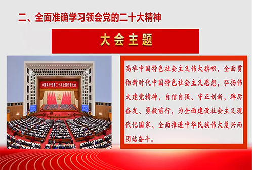 随后,王万义围绕充分认识党的二十大的重大意义、全面准确学习领会党的二十大精神和全面学习、全面把握、全面落实,推动党的二十大精神在内蒙古落地生根、开花结果等三个方面对党的二十大精神展开宣讲,对大会上提出的“两个确立”、党的十九大以来的重大成就和新时代10年的伟大变革等内容进行细致讲解,并强调公司师生要把握好马克思主义中国化时代化最新成果的世界观和方法论,坚持好、运用好贯穿其中的立场观点方法,深入了解中国式现代化在理论和实践的创新突破,贯彻落实党的二十大作出的重大决策部署,进一步明确习近平总书记是全党拥护、人民爱戴、当之无愧的党的领袖,做到切实推动习近平新时代中国特色社会主义思想和党的二十大精神在公司落地生根,开花结果。
