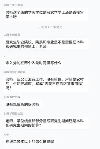 会议伊始,青林表明本次会议旨在帮助同学们明确2023年内蒙古自治区选调生考试报考流程,并为同学们解答相关疑问,保障报考工作的顺利进行。随后,青林根据报名申请表说明填表注意事项,强调填表信息的真实性及准确性,使同学们对填表工作更加了解。期间,青林就同学们提出的典型问题进行详细解答,使其进一步明确各类注意事项。会议最后,青林总结会议要点,使同学们更加系统地掌握选调生考试报考流程。