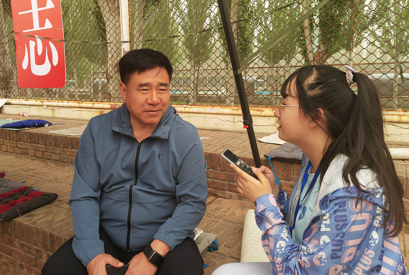 记者:看到您刚刚参加完百米跑,请问您为参加本次比赛做了哪些准备?