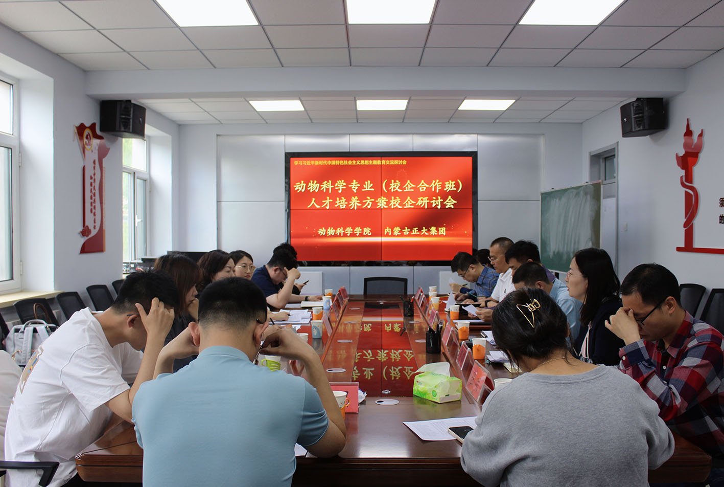 为落地落实教学改革,5月25日,公司与内蒙古正大集团在动科楼302会议室开展动物科学专业(校企合作班)人才培养方案研讨会,本次会议由公司教学副经理苏蕊主持,党委书记包国荣、经理李大彪、党委副书记斯日古楞、副经理张燕军及内蒙古正大集团人力资源总监杨萍、养殖事业线人力资源经理冯文清出席,公司校企合作班全体班主任参加。