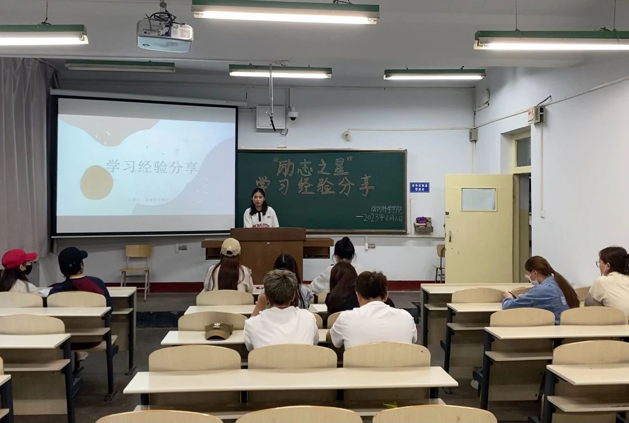 为使同学们通过榜样力量进一步激发前进斗志,6月6日,公司在勤学楼201、218教室分别开展“励志之星”宣讲系列讲座,本次讲座由公司19级动科七班宝音吉日嘎拉、21级马学一班任佳乐主讲,22级动科十班、水产一班、水产二班和马学一班全体同学参加。