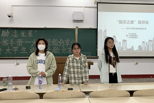 讲座伊始,张宝宗对进行宣讲的赵丽伟、彭渝和徐晓怡三位同学进行介绍,并向同学们说明本次讲座的目的,希望同学们把三位同学当做榜样,学习其优秀品质。讲座中,赵丽伟、彭渝和徐晓怡分别分享其自身对于考研的复习经验。期间,同学们踊跃提问考研的相关问题,三位宣讲人逐一解答。随后,三位宣讲人向同学们讲解了如何规划学习时间、如何提高学习效率、考试技巧等方面的经验,并鼓励同学在学有余力的同时积极参加校、院各类活动,拓展思维,全方位锻炼自己的能力。讲座最后,三位同学向同学们阐明了绩点的重要性,希望同学们努力学习提高自己的成绩。