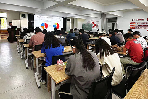会议伊始,张立兴为同学们播放企业宣传片,使同学们初步了解企业文化、内容等。随后,张立兴从选择开启人生、目标带来机会、扎根成就人生三方面为同学们讲述本次宣讲会的主要内容。会议中,张立兴详细介绍企业的工作内容以及发展趋势,讲述企业在养殖方面的发展成就及方向。会议期间,张立兴为同学们介绍企业人才招聘的方向及薪资待遇,他表明企业希望广招有上进心的人才并对其进行重点培养,提升其专业素养。会议最后,张立兴为同学们展示招聘岗位,介绍企业志愿服务,明确企业文化,并与同学们积极交流,帮助其了解企业人才招聘的相关内容。