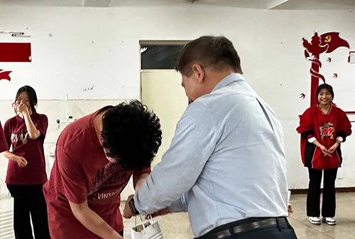 活动伊始,其力格尔对领导们的到来表示热烈欢迎,并表明本次探班活动旨在提升同学们的自信心,以最好的精神状态迎接“金马杯”大赛。随后,包国荣对同学们表达了深切的关怀和鼓励,他表示准备过程中所付出的努力和汗水都值得肯定和赞扬。活动期间,包国荣表明金马杯作为校园文化的重要组成部分,不仅有助于推动校园文化的建设和发展,更展现了公司员工的精神风貌,他预祝同学们在“金马杯”舞蹈大赛中取得优异成绩。活动中,领导们为舞蹈老师献花,并为同学们准备了慰问品。活动最后,领导们认真观看舞蹈队伍的彩排,对同学们的舞蹈表演和艺术表现力给予充分肯定,希望同学们通过本次“金马杯”充分展现自己的风采。