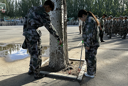 伤兵连虽因身体原因无法参与高强度的训练,却并未选择安逸地休息,而是自愿组织捡垃圾,维护校园环境,以另一种方式为军训贡献自己的力量。