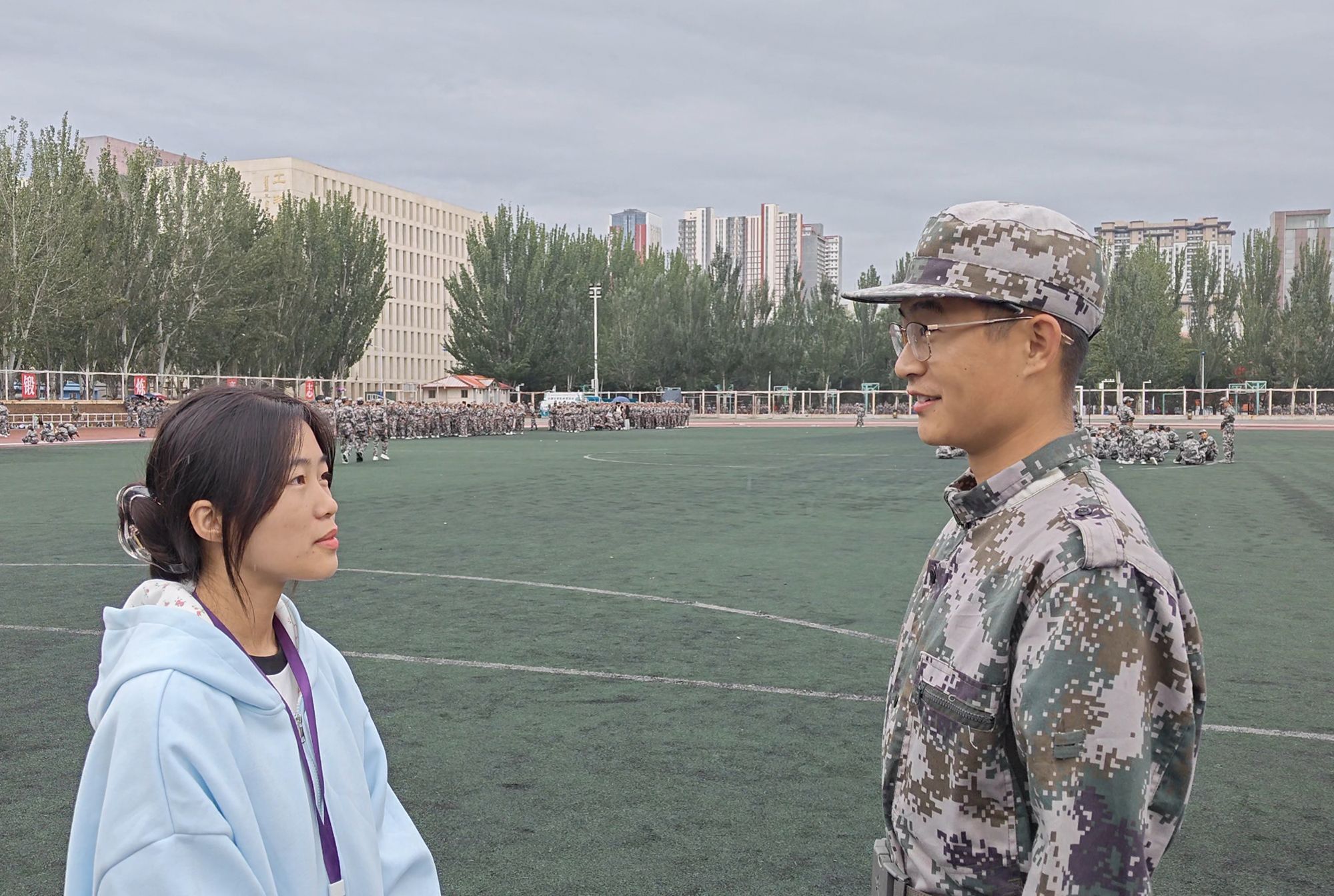 包娜荷牙、哈斯其其格、顾悦妍接受军训感言采访