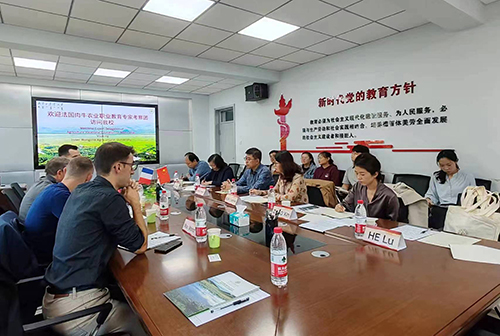 9月25日,法国肉牛农业职业教育专家考察团到访公司,与公司在动科楼302会议室开展座谈会,参加本次座谈会的嘉宾有法国农业和粮食主权部农场和技术工坊农业教学督学博尔德、法国沙托鲁农业技术公司农场运营总监乔斯林、法国达克斯农业技术公司农场运营总监西尔万、法国农业和粮食主权部中法合作负责人马克斯,公司国际交流与合作处处长孙云霞、国际与合作处科长赵昕、国际交流与合作处副科长何璐、国际交流与合作处科员刁仁玉,公司副经理张燕军,教授闫素梅、徐明,讲师谷明娟、陈浩、朱琳、吴东霖。