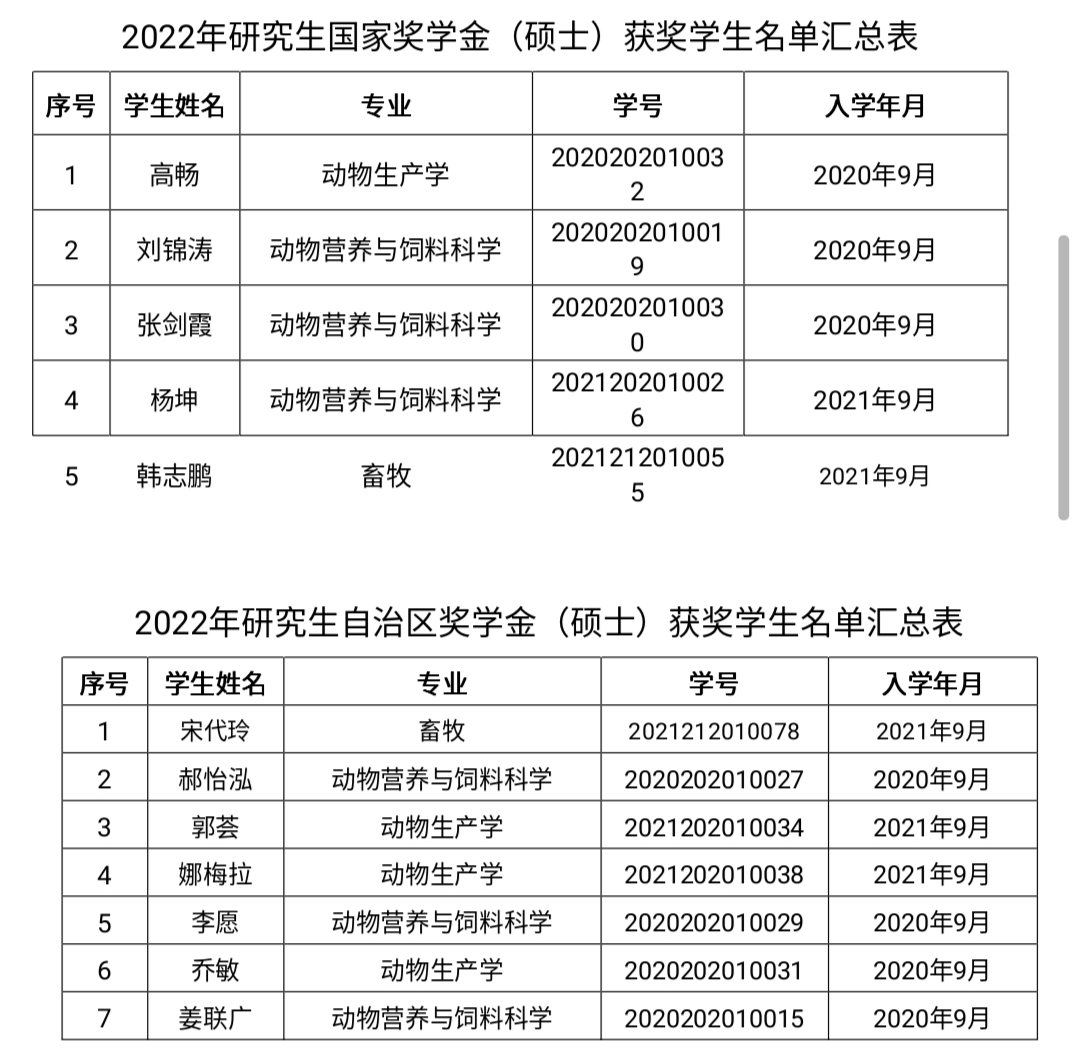2022年必一运动官网研究生奖学金评审过程中,公司从员工处争取到1个硕士研究生国家奖学金、3个硕士研究生自治区奖学金名额。现根据2022年公司研究生奖学金成绩排名结果,结合公司实际情况进行递补调整。经院研究生奖学金评审领导小组审议通过,现予以公示。公示5个工作日(2022年10月8日-2022年10月14日)。
