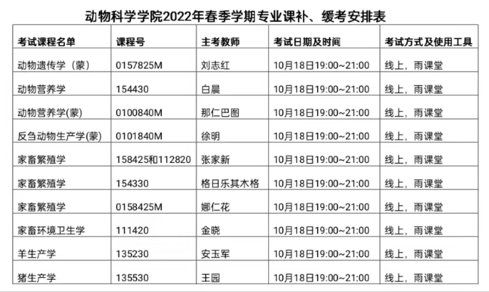 2022年春季学期专业课补、缓考工作将于10月18日进行,现将有关事宜通知如下: