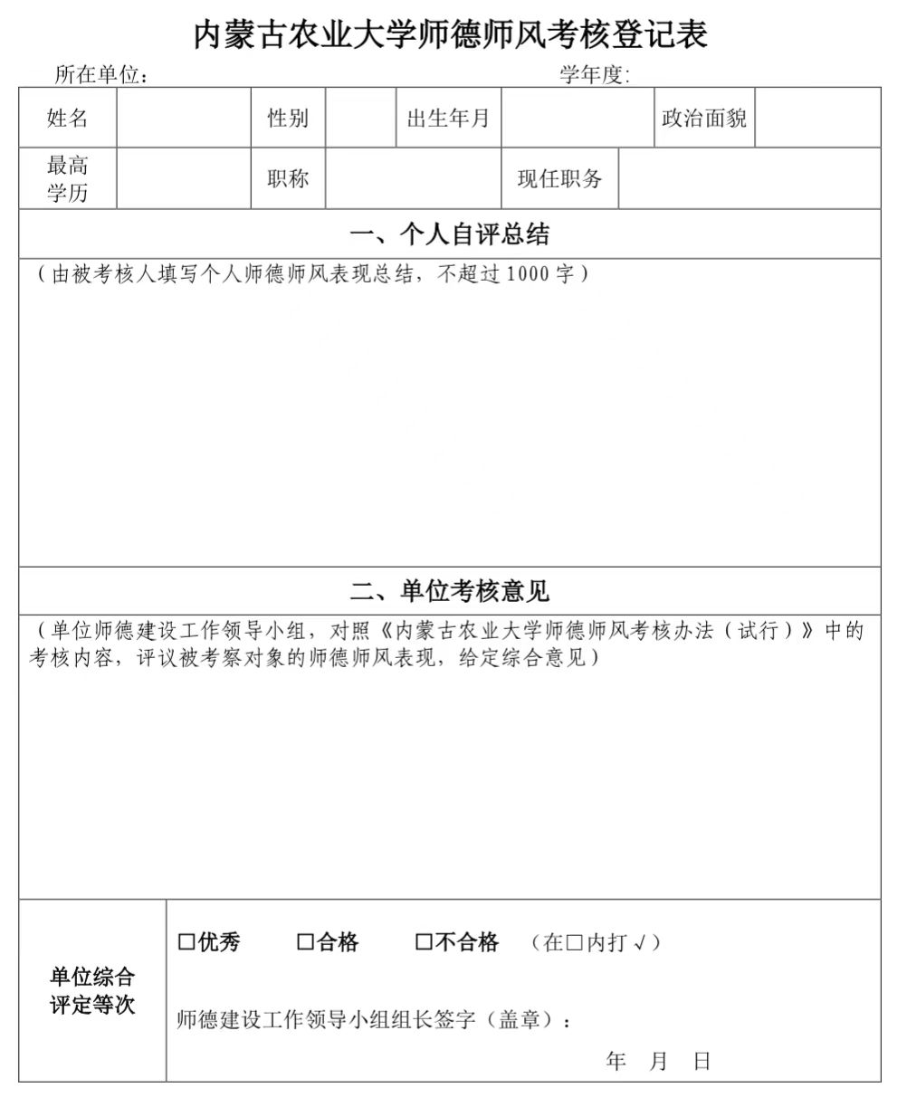 案,《师德师风考核登记表》存入师德档案。