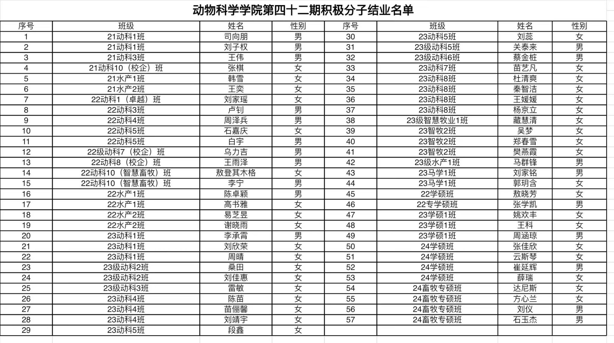 公司第四十二期入党积极分子党课培训已顺利结束。本次培训班从10月11日开班,至10月28日结业考试,经过21学时集中授课,24学时网上系统自学,3学时视频学习及观后交流,3学时义务劳动,共计51学时。本期学员共有63人,其中有63人参加考试,最后57人通过考试。结业名单如下: