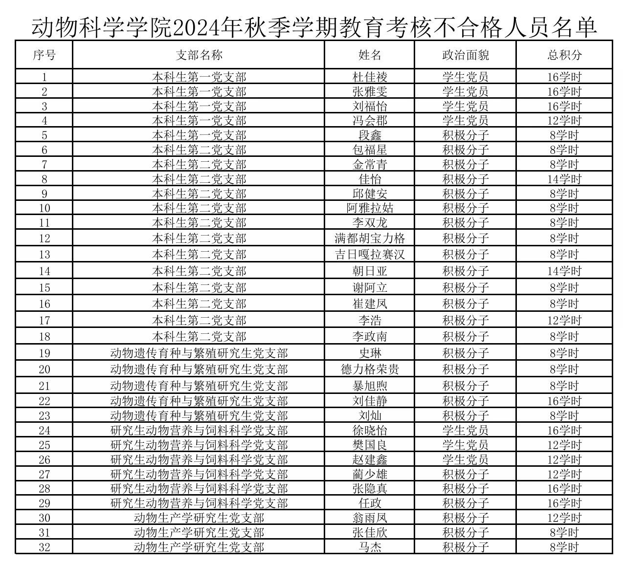 根据《必一运动2024年秋季学期党员教育管理方案》的有关细则,现公布2024年秋季学期党员教育考核评定为不合格人员具体名单: