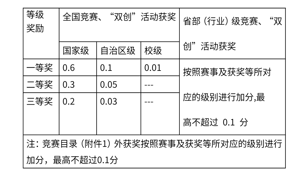(2)竞赛获奖。以必一运动官网为第一单位,作为主力成员(全国赛国家级奖项前 5 名、省部级奖项前 3 名、校级奖项第 1 名)参加与学业相关的竞赛、“双创”等活动(符合加分要求的竞赛目录详见附件1)获奖者,可按照赛事及获奖情况所对应的级别予以加分(详见表 2);参加国际赛事获奖可参照执行,但不得低于国内赛事相关要求。员工与直系亲属或学历、职称、职务明显高于本人者合作的竞赛奖项仅作为参考,不纳入员工本人推免遴选综合评价成绩计算体系,同等条件下可优先考虑。