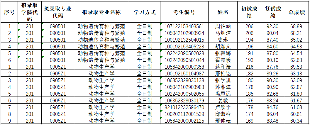 附件下载: 动科院2022年研究生调剂拟录取名单公示20220407.xlsx