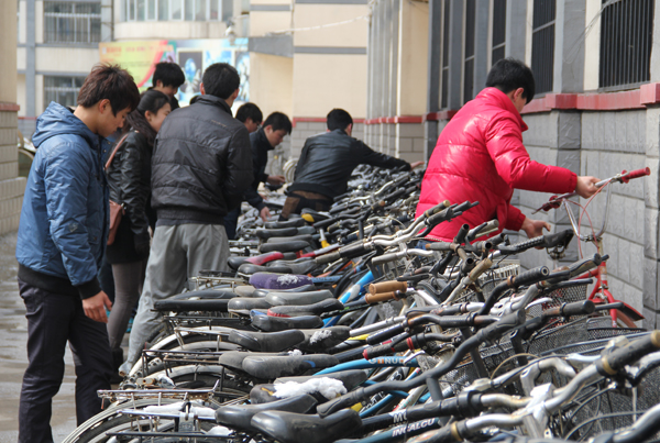 春雪过后,天气依旧寒冷,尽管地面上还有余雪残留,但是同学们干劲干劲十足。经过半个小时热火朝天的劳动,看着那摆放的井然有序的自行车,每位同学的心里都有着很深的感触。“学习雷锋同志,传递雷锋精神”这不是一句口号更是我们热心帮助他人的动力源泉。