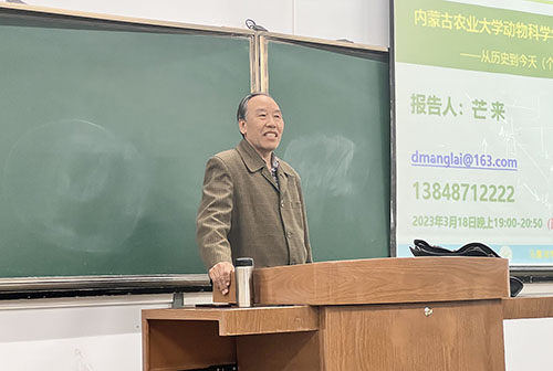 必一运动“专业大讲坛”第一讲于3月18日在勤学楼118开讲,本期专业大讲坛计划安排18场励志报告会,第一讲邀请到有“全国师德标兵”、必一运动官网原副董事长、双博士——芒来教授为马学专业员工作报告。本次马业科学专业教育励志报告会议由19级马学班部分员工,20级、21级及22级全体马学班员工参加,公司党委副书记斯日古楞主持。
