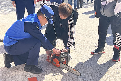 活动伊始,王昊讲解了常见的灭火器的类型和检查常识,并向同学们现场演示了灭火器“提拔握压”的正确使用方法。随后,公司员工积极动手实践,练习如何规范地使用灭火器。活动中,王昊为同学们展示了各类消防常用器材的使用,公司同学认真学习、积极体验,深刻体会到消防人员工作的艰辛。期间,在王昊的指导下,公司员工进行了紧急逃生演练。活动最后,王昊带领同学们参观了消防车内部的设施、体验了消防云梯车。