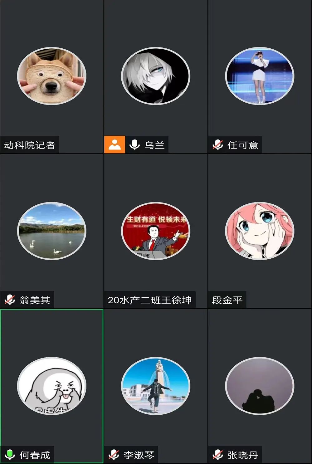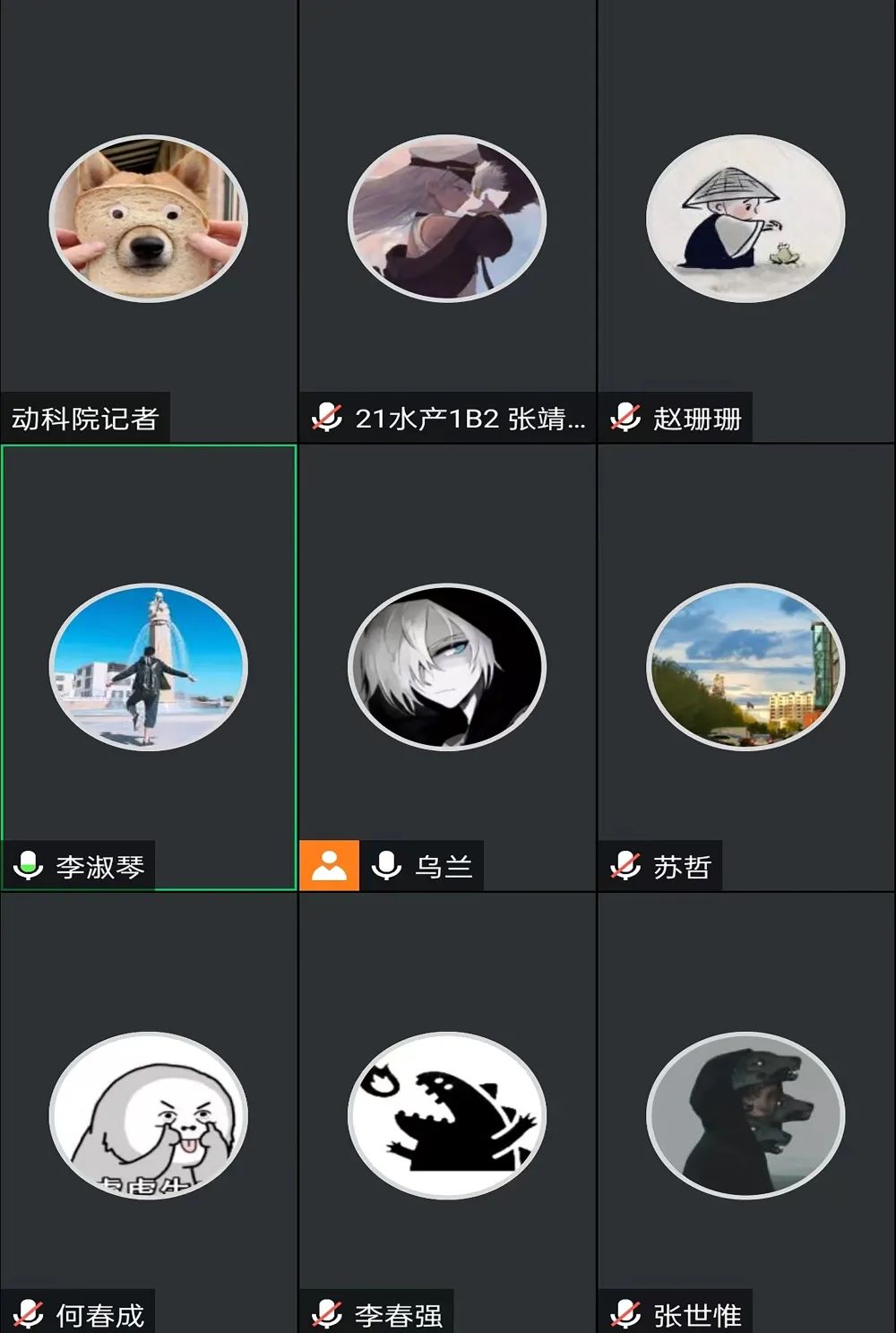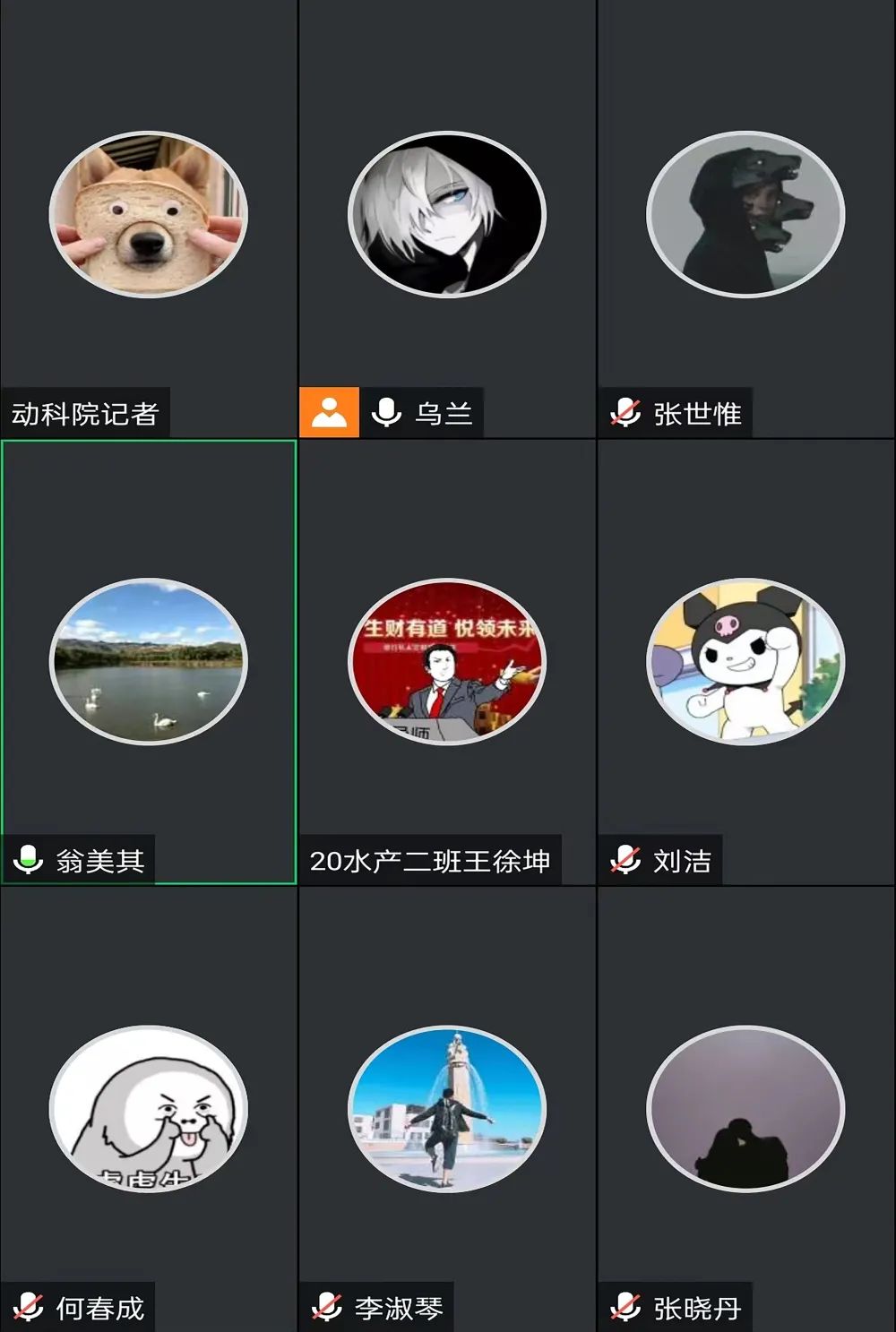 讲座伊始,乌兰对本次参加讲座的同学表示欢迎,同时帮助同学们分析水产专业考研的优势,并表明苗静、任可意、李淑琴、何春成、翁美其、青丽霞、黄景莉等研究生学长学姐结合自身经验,结合线上会议的形式依次向同学们分享考研经验、学习方法、研究生生活等方面,帮助大家进一步了解本专业的前沿研究。随后,学长学姐建议同学们要在本科时期做好未来规划和考研准备,在学好专业知识的同时积极参加校内校外的活动,养成运动和读书的习惯,培养个人能力。期间,学长学姐就同学们的提问进行深入交流。讲座最后,乌兰指出同学们应将习得的专业知识与改善国计民生相结合,把社会主义核心价值观与科学家精神有机融合,树立正确的世界观、人生观、价值观,以自信、激情和梦想找到属于自己的风口和赛道,跑出实现个人成长进步的加速度。
