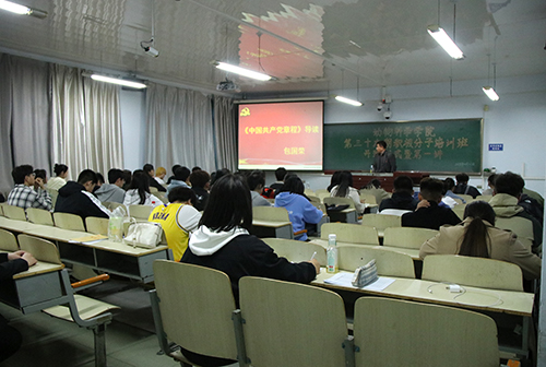 课程伊始,马晓莺为同学们介绍出席本次会议的嘉宾,并请全体成员起立奏唱国歌。随后,包国荣做动员讲话,并强调本次会议的重要意义在于坚定理想信念、政治抱负和政治理想,其内涵不仅是知识的传输,更重要的是一种思想武装,进而了解党的组织、党的理论和党的精神,从而提升同学们的理论水平及政治修养。开班仪式期间,斯日古楞宣读教学计划及安排,并预祝第三十九期积极分子顺利结业,至此开班仪式结束。课程中,包国荣作第一讲——«中国共产党章程»导读,根据党章的地位和作用、党面临的形势和任务及党章的内容三个方面阐明学习党章的重要意义。其后,包国荣从«中国共产党章程»是什么、党的性质、党的指导思想及如何学习«中国共产党章程»等多个角度进行解读,使同学们进一步理解«中国共产党章程»的重要内涵。课程最后,包国荣对本次课程做出总结,并对同学们提出建议,希望其自主学习党章的更多内容。