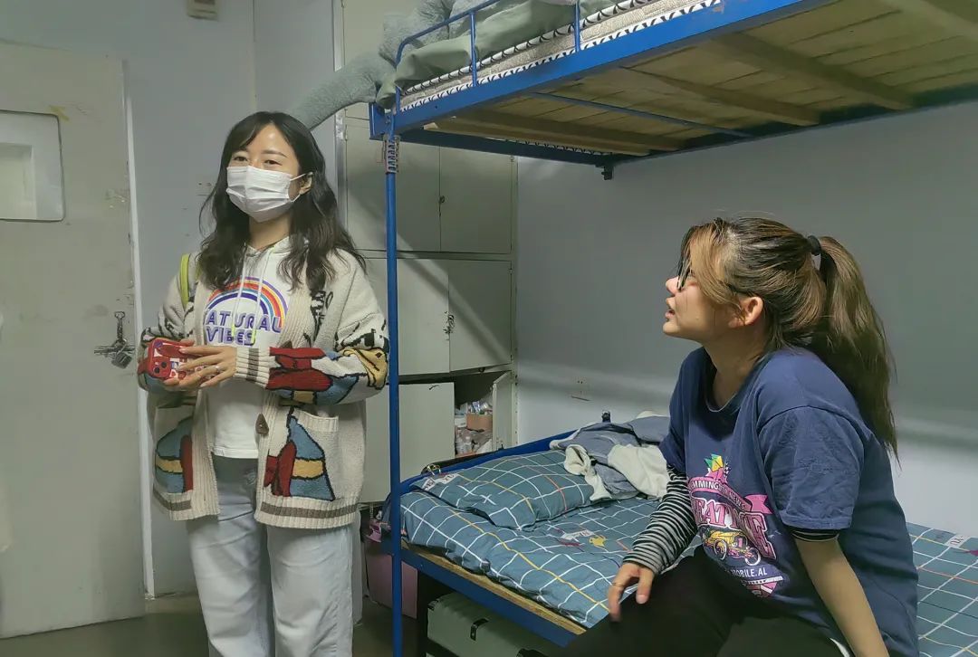 班主任走访宿舍并与员工交流