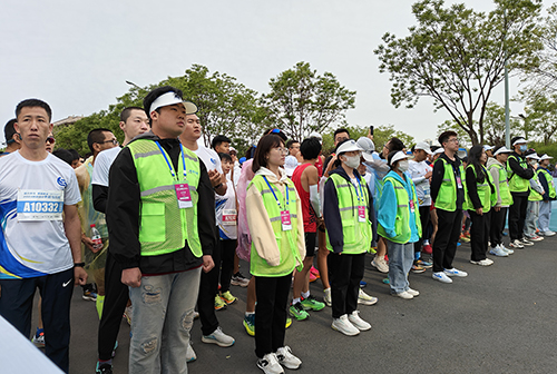 活动开展前,半程马拉松组委会工作人员为公司志愿者进行培训,对本次赛事进行介绍并详细说明具体工作内容,将志愿者分为起点外围指引组、终点搀扶组、完赛奖牌发放组等十个小组。活动伊始,志愿者们在其力格尔的带领下,集体乘车提前到达各自的站点,进行赛前服务准备工作。随后,各小组志愿者在自己的岗位上以认真负责的态度完成工作。活动中,志愿者的身影遍布每个站点。补给站组的志愿者们细心地为参赛选手递发补给;起终点组一直坚守岗位,为半马完赛运动员准备颁奖工作,认真给领取奖牌的运动员号码布做标记;主会场指引组指引运动员前往检录、集结区领取完赛物品。活动期间,公司全体志愿者辛勤付出,严格遵守赛场纪律,以积极饱满的精神状态投身于比赛服务中,确保赛事秩序井然。活动最后,志愿者们收拾余留物品,让场地恢复如初。