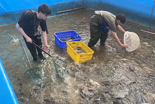 本次实习行动将通过产学研实习实践合作的形式开展员工池塘养鱼生产实习工作。实习期间,同学们通过参加实际生产,进一步学习池塘清整准备、虾蟹培育技术、苗种繁育技术、池塘生物饵料培养技术、水生生态学调查、成品饲养技术、水质调控技术以及水产动物养殖管理措施、分池和捕捞技术等实操工作,了解并熟悉水产养殖主要设施、设备,以及工厂设计和布局等。目前,实习已进行20天,同学们已完全熟练掌握实习中学习到的工作要领和方法,增强了同学们对水产专业的热爱,对公司水产养殖技术人才培养有促进作用。