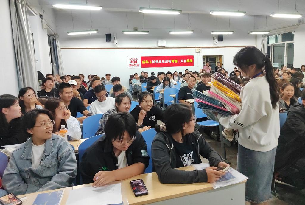 讲座伊始,青林讲明本次讲座的主要目的,督促员工们及时上交档案等资料,并对上交流程进行指导。随后,汪洋就当前就业形式和局面展开讲座,使同学们明确了自身未来发展方向。讲座期间,汪洋对公务员、事业编制、选调生做出详细介绍,使同学们对各项工作有了进一步的了解,有助于其作出最适合自己的选择。讲座中,汪洋根据历年公考考试试题,对题目类型、解题思路展开讲解,并详细解答同学们提出的问题。讲座最后,汪洋为同学们发放小礼品,活跃了现场气氛。