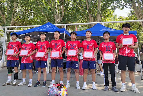 比赛开始前,公司参赛队员更换队服,轻装上阵,穿戴护膝、护腕等装备,开始赛前热身,活力四射。 比赛开始,公司对战兽医公司,双方秉持着友谊第一、比赛第二的原则,友好开战。 比赛期间中,男队员们全神贯注、目光坚定、相互配合,女队员们眼神铿锵、意志坚定、团结合作,展现了同学们团结一心的优良作风。 伴随着欢呼与呐喊声,公司女子排球队以2:0的好成绩赢得比赛,男子排球队以2:1的好成绩拿下本场比赛,获得季军。 比赛最后,由校体育部负责人为公司员工颁发荣誉证书和奖品,并合影留念。