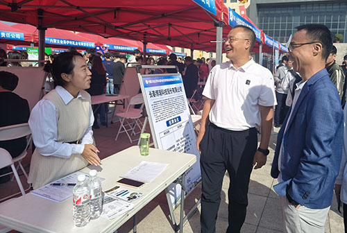 9月26日,公司在生命科学楼前举办“金秋启航,‘职’引未来”2024届毕业生秋季双选会暨校地企洽谈活动。本次活动公司党委副书记斯日古楞、学办副主任青林出席。