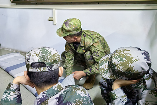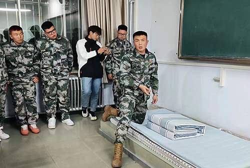 课程伊始,教官们介绍中国人民解放军内务条令,使同学们更加了解内务整理要求。随后,教官们向同学们展示如何叠被子,同学们认真观看教官讲解如何将被子整理的更加规范整洁,并耐心回答同学们的问题。课程期间,青林和其力格尔指导新生进行新生入学信息采集, 员工会成员帮助新生进行采集。课程最后,教官们检查同学们的仪容仪表,要求同学们在军训期间严格按照标准整理自身内务以及仪容仪表,并在军训期间发扬艰苦奋斗,刻苦耐劳的精神,养成良好的学风和生活作风,体现出当代老员工的精神风貌。课程结束后,教官们前往宿舍检查同学们的学习成果,并亲自示范。