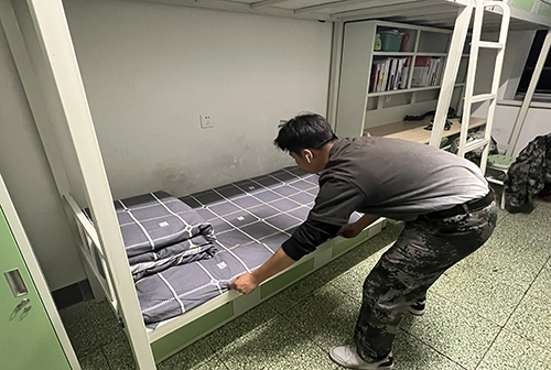 胡晓燕主要检查了各个寝室的床铺、地面以及公共物品的摆放情况等是否达到部队的要求。在本次寝室内务卫生检查中,2号楼518、520宿舍整体情况良好,主动验收,得到了胡晓燕以及其他老师的高度评价。期间,教官们对员工宿舍进行了细致指导。关于被子叠放、地面清洁、物品摆放等,胡晓燕一一指出问题所在,再次强调内务整理标准,使同学们对内务规定有了更加明晰的了解。最后,部分新生向胡晓燕请教了一些关于内务评比等其他方面的问题,胡晓燕也耐心的进行解答并希望同学们继续保持良好的生活习惯和作风。在各位新生对胡晓燕的感谢声中,内务检查活动圆满结束。
