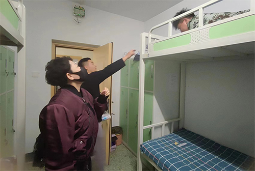 为加强宿舍管理,让同学们在老员工活期间养成良好的卫生习惯,10月9日,公司学办主任胡晓燕深入到23级新生宿舍楼,对宿舍内务整理进行检查,现场对内务进行指导。