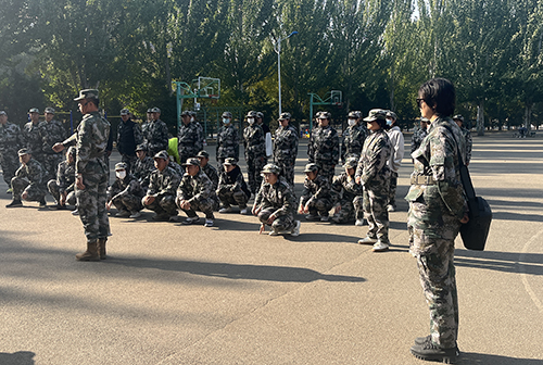 公司指导员和同学们耐心沟通,及时了解军训实况,嘱咐公司学子要坚持刻苦训练、磨炼顽强斗志、增强国防意识。