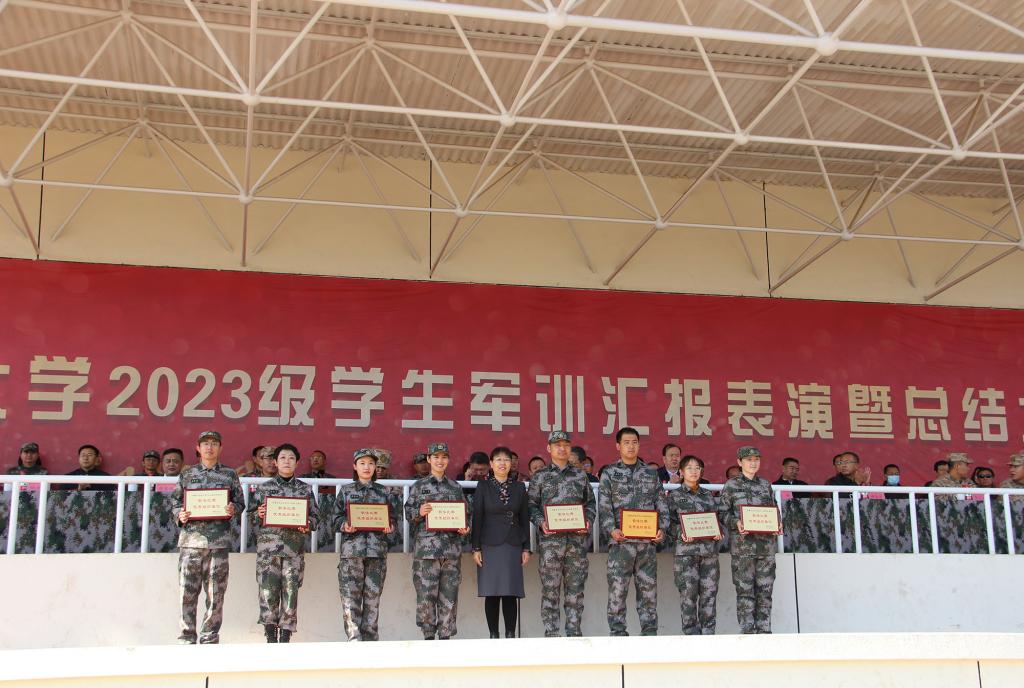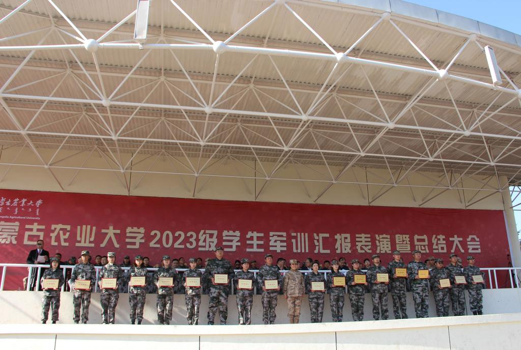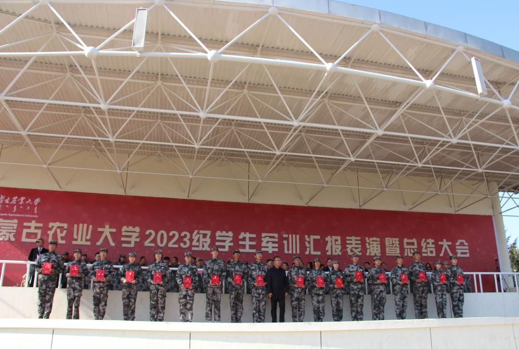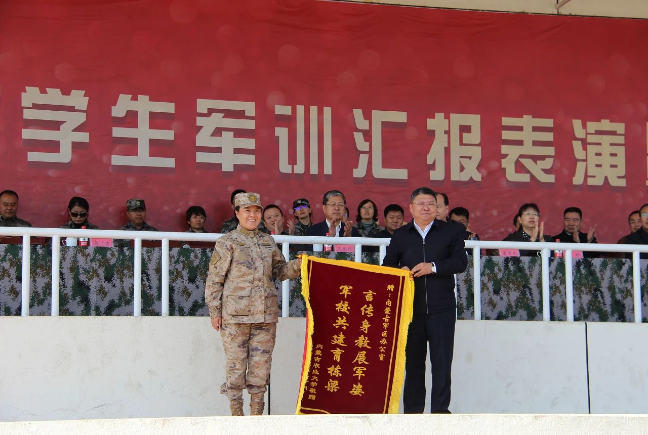 陈永胜向承训部队赠送锦旗,乌兰吉接受锦旗。董贵成宣读大会表彰决定,内蒙古军区代表与校领导分别为先进单位与优秀个人颁奖,公司二连和三连获得“军训优秀连队”称号,公司获得“歌咏比赛优秀组织单位”称号,其力格尔和马晓莺获得“优秀指导员”称号,公司石欣冉、孙亮、郭昕璞、郭慧、白润雨、孙嘉鑫、武晓慧、刘欣荣七名员工获得“军训标兵”称号。
