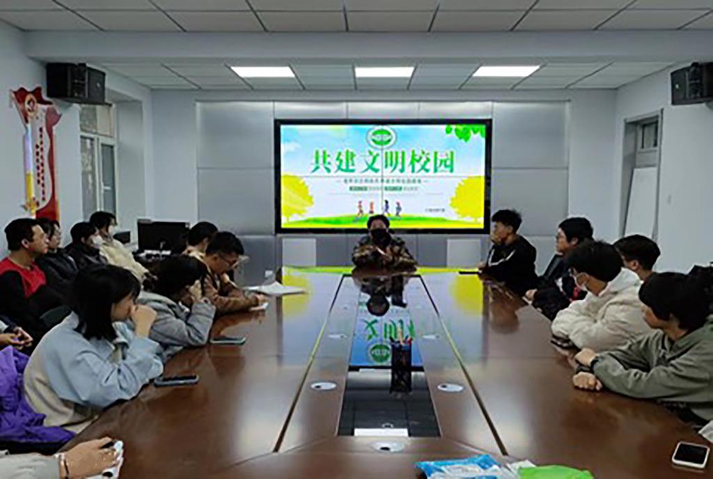 会议伊始,郭奕婷介绍了本次会议分为“加强校园文明建设”、“严肃考风考纪”以及“校规校纪教育”三部分内容。随后,胡晓燕列举相关实例,要求同学们维护校园环境,遵守校规校纪,提高自身素养,为创建文明校园贡献力量。会议中,胡晓燕针对考试违纪问题提出严厉警告,说明该事件的严肃性,叮嘱同学们要认真学好专业知识,提升自身水平,严守考场纪律。会议最后,胡晓燕进行总结,希望同学们保持优良作风,文明守纪,严格要求自身,在期末考试中发挥真实水平,取得优异的成绩。