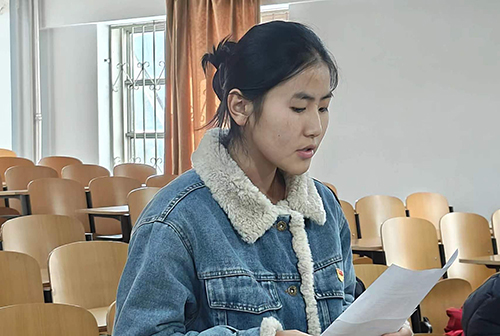 会议尾声,由副书记呼雅歌带领新发展预备党员宣读《入党誓言》,全体预备党员进行庄严宣誓,他们表明会端正作风,以党员的标准去要求自己。会议最后,其力格尔做最后总结。她希望各位同志要坚定理想信念,明确入党动机,努力提升个人思想境界,为班级、公司、公司乃至整个社会贡献力量,做好榜样带头作用,不忘初心,砥砺前行。