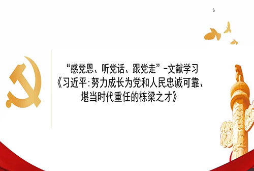 活动伊始,辉芳对本次学习活动进行介绍,说明本次学习旨在学习习近平总书记的重要讲话精神,提升党支部成员的思想觉悟,努力成为坚定信念、对党忠诚、勇于担当,堪当时代重任的栋梁之才。随后,辉芳带领全体与会同学学习《习近平:努力成长为党和人民忠诚可靠、堪当时代重任的栋梁之才》文献。活动中,集体观看学习视频。期间,同学们认真观看,记录学习心得,纷纷表明会从自身做起,勤学苦练,增强本领,不落伍、不掉队,努力成长为对党和人民忠诚可靠、堪当时代重任的栋梁之才,为祖国的繁荣发展奉献力量。活动最后,辉芳对本次活动进行总结,希望同学们能够扎实掌握自身专业知识、加强理论学习、夯实理论功底,自觉用新时代党的创新理论观察新形势、研究新情况、解决新问题,要坚持理论和实践相结合,注重在实践中学真知、悟真谛,加强磨练、增长本领。