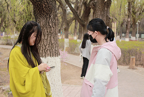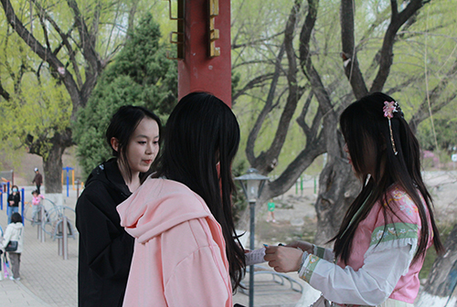 同学们寻找“桃花仙子”,