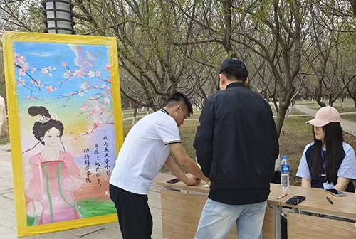桃花在中国文化中有着重要的地位,被视为春天的象征,与爱情、长寿等美好寓意相关。本次活动以桃花为主题由线上、线下两部分组成,活动内容新奇有趣,以一种游戏的方式,寻找散落在满都海公园中的“桃花仙子”,使同学们在轻松活跃的氛围中能够找到春天、拥抱春天、感受春天。活动期间,公司近四百名同学参与其中,同学们在信笺上写下自己的心愿和对生活的美好祝愿,努力寻找“桃花仙子”实现心愿,体现了公司员工积极乐观的心态与对未来的憧憬。活动中,全体工作人员坚守岗位,“桃花仙子”们热情洋溢,迎接每一位参与者的到来,他们的意志坚定与辛苦付出和每一位参与者的到来使得本次活动的圆满成功。