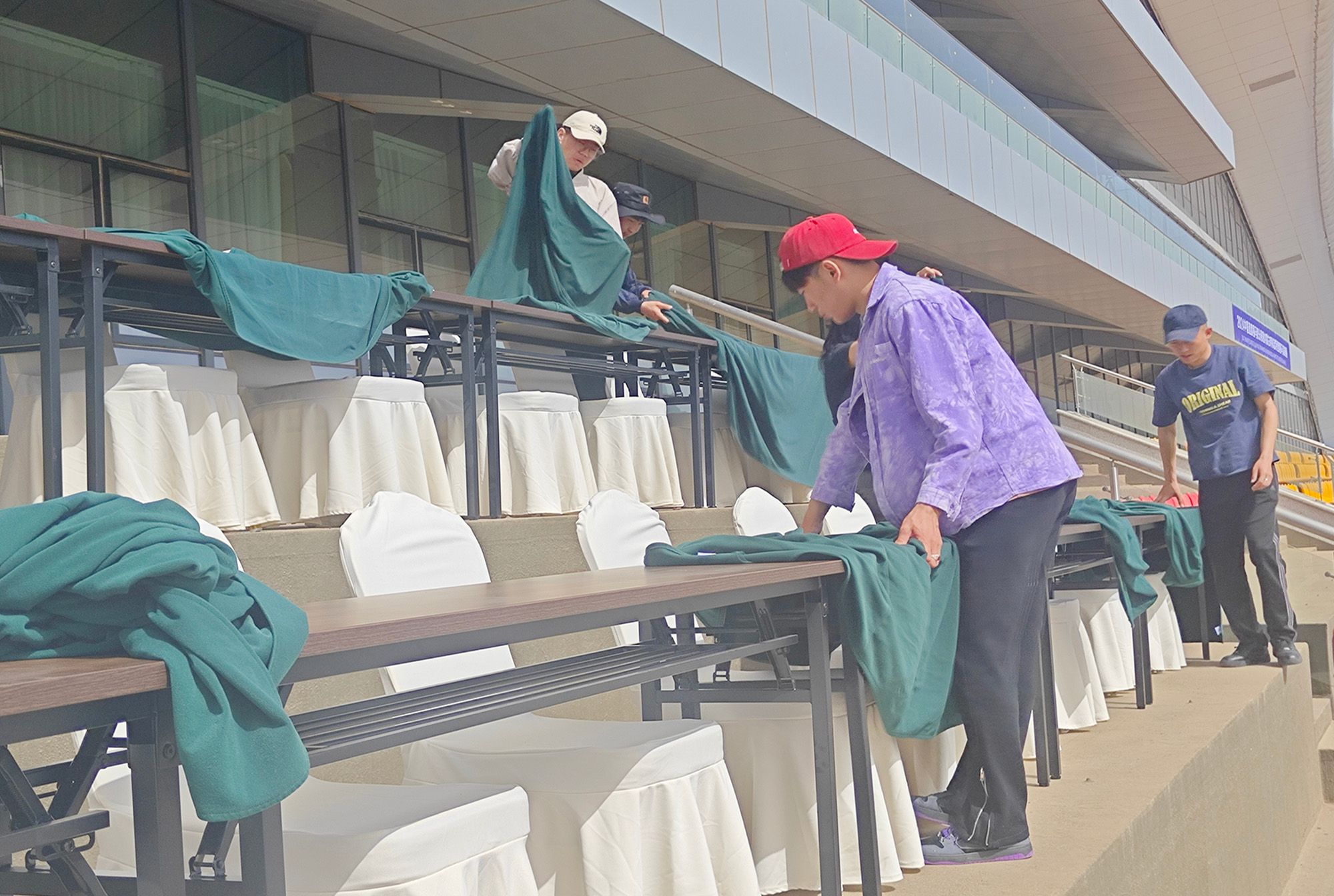 活动伊始,乌尼尔夫对同学们进行分组,提醒同学们在志愿服务中要注意安全,并对活动流程展开讲解。随后,志愿者们对活动现场布置,摆放桌椅,铺设地毯,同学们团结协作,有序完成了现场布置任务。活动期间,志愿者们一同享用主办单位精心准备的午餐,并进行了短暂休息,为下午的志愿服务工作蓄力。