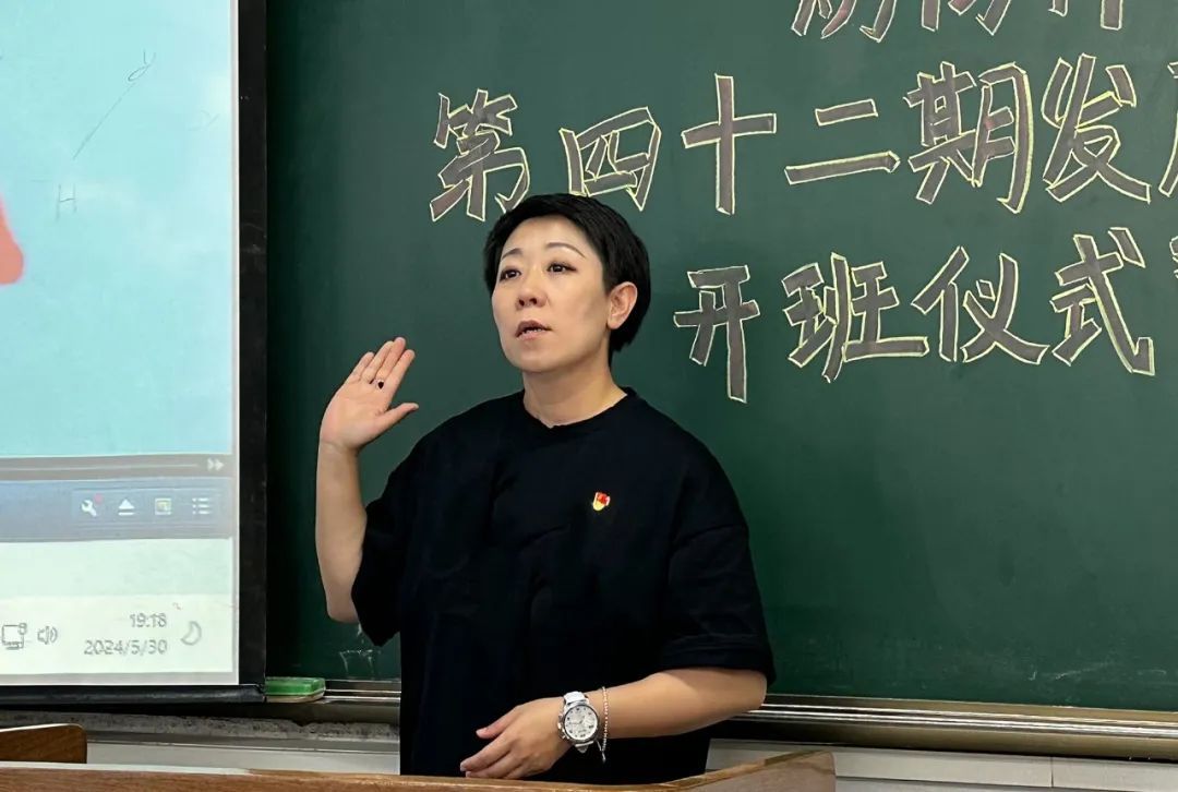 仪式伊始,青林宣布第四十二期重点培养对象培训班开班仪式开始,全体起立奏唱国歌。随后,青林介绍出席仪式的嘉宾,并宣读仪式内容。期间,胡晓燕作动员讲话,以杨根思连为切入点,告诫同学们要端正入党动机,时刻牢记为人民服务的初心,笃行实干,发挥模范先锋作用,为早日成为一名合格的中共党员而努力。其后,青林宣读教学计划及安排。仪式最后,胡晓燕宣布本期课程第一讲正式开始。