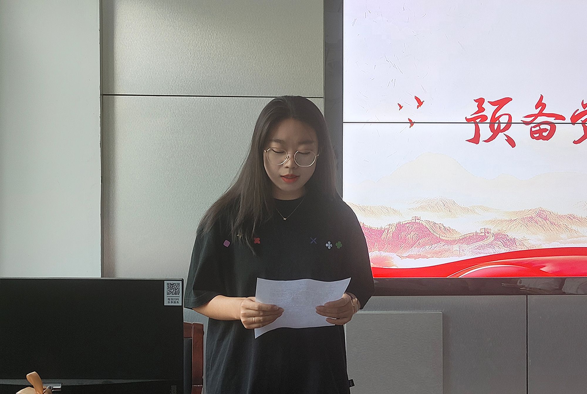 预备党员宣读《转正申请书》